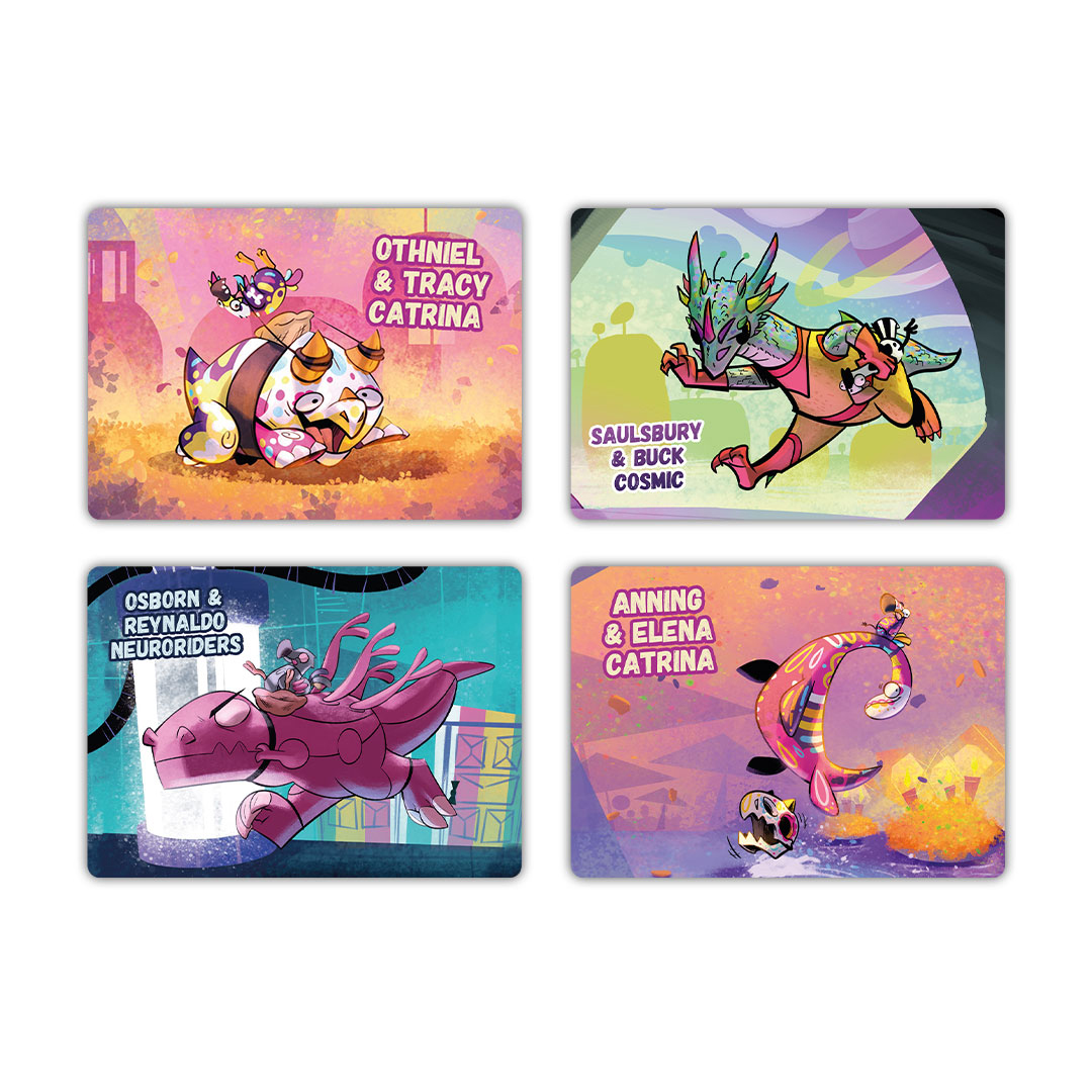 Dodos Riding Dinos Crossover Promo Cards Patzcuaro, Neuroriders, Cosmic Cow Collectors ENG