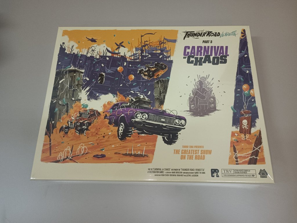 Thunder Road Vendetta Expansion Carnival of Chaos Kickstarter Edition + příslušné stretch goals ENG. Neobsahuje Turbo Tina's SWAG Pack.